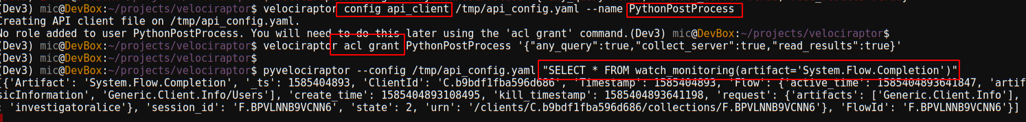 velociraptor acl grant PythonPostProcess ‘{“any_query”:true,”collect_server”:true,”read_results”:true}’
