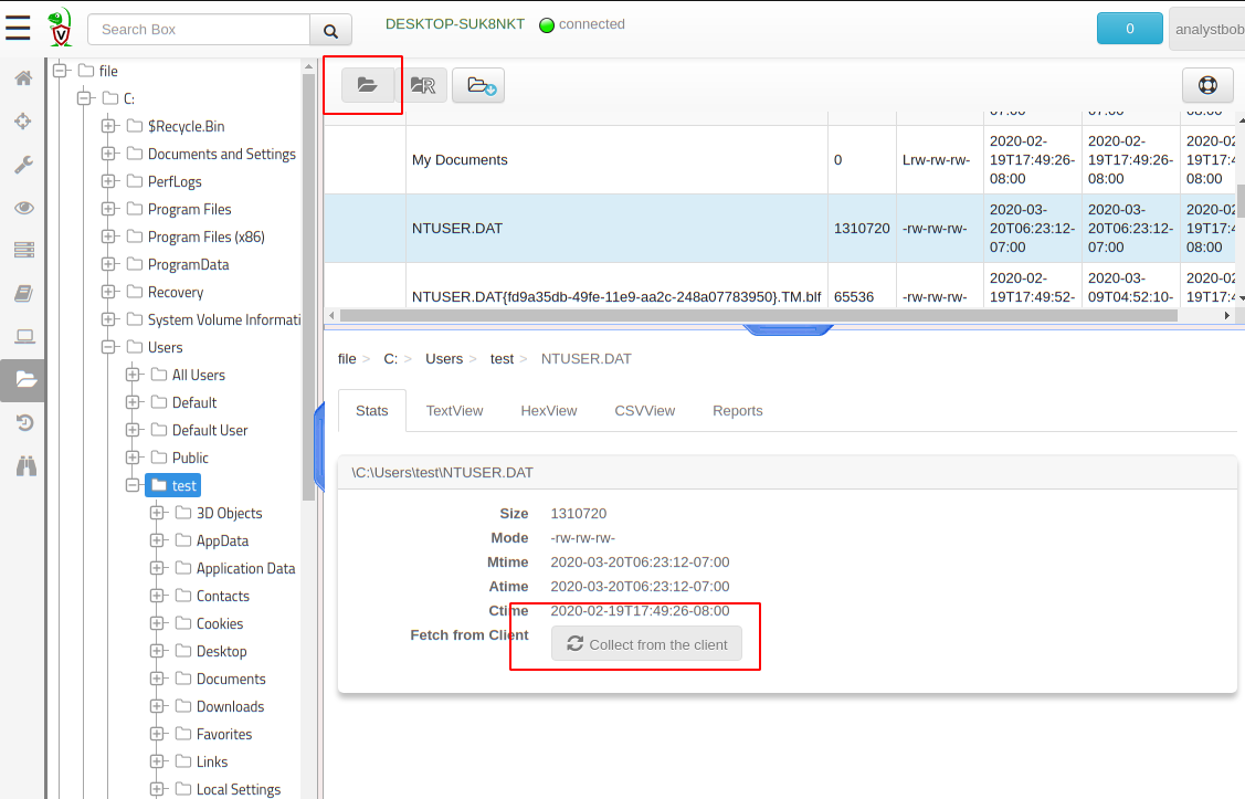 The rest of the GUI does not allow Bob to actually collect any new data — for example the VFS view does not allow collecting new directory listing or new files (but Bob can still navigate already collected directories).