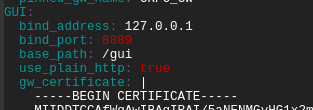 I also specify the GUI to listen on the path starting with “/gui” instead of the root — this allows nginx to proxy the GUI at a different URL to the default.