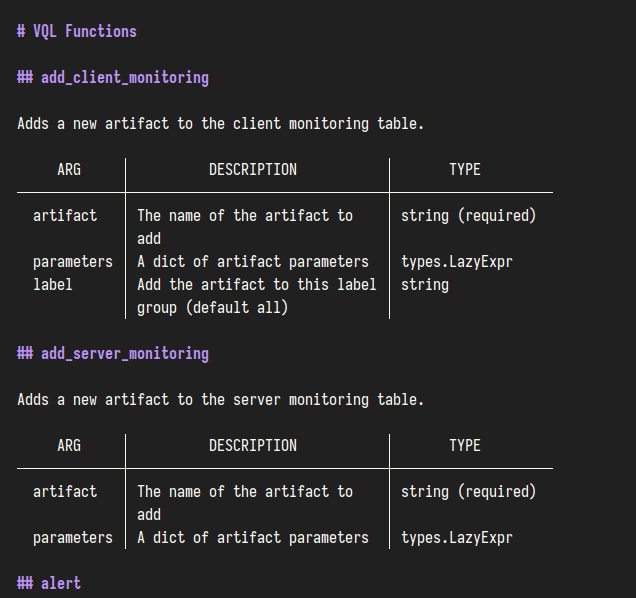 velociraptor vql list | glow -p