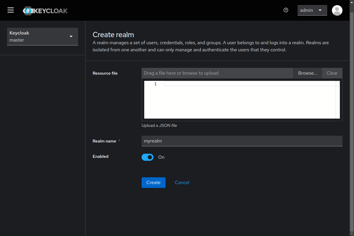 You can use any name for the realm but here we are going to just use myrealm