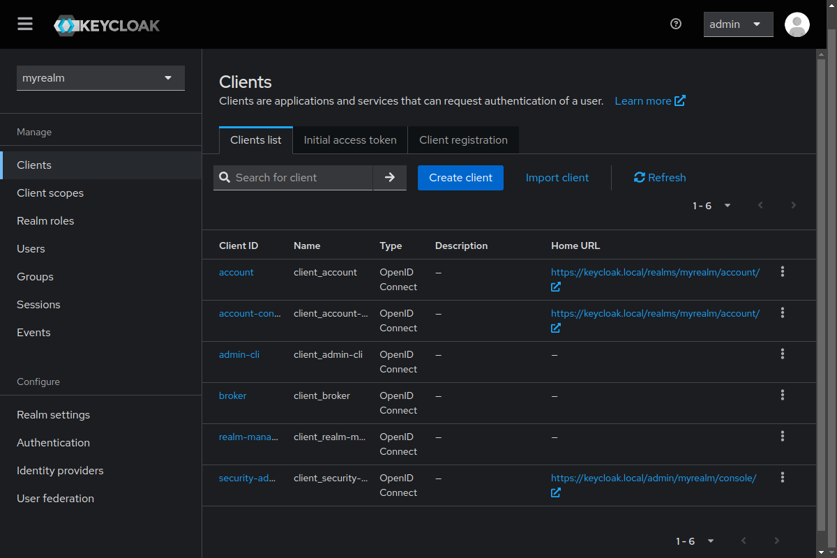 Connect to Keycloak’s Admin Console (in this case: https://keycloak.local) and