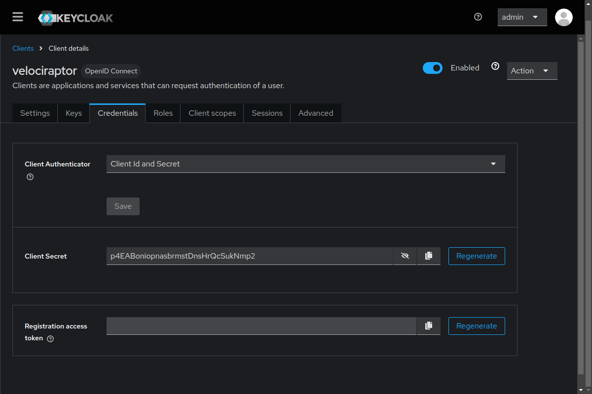 On the page that follows, go to the Credentials tab. There you will find the Client secret which you will need for your Velociraptor configuration. It is randomly generated and you can regenerate it if desired, but if you do so then don’t forget to update your Velociraptor server’s config with the new secret. Typically you would only regenerate it if you suspected a compromised secret.