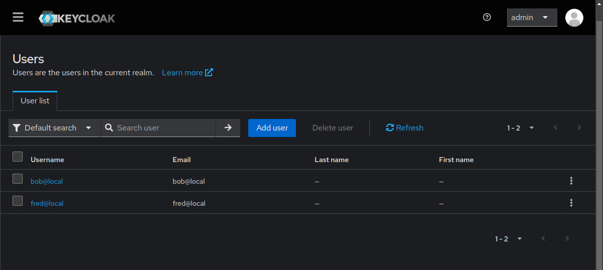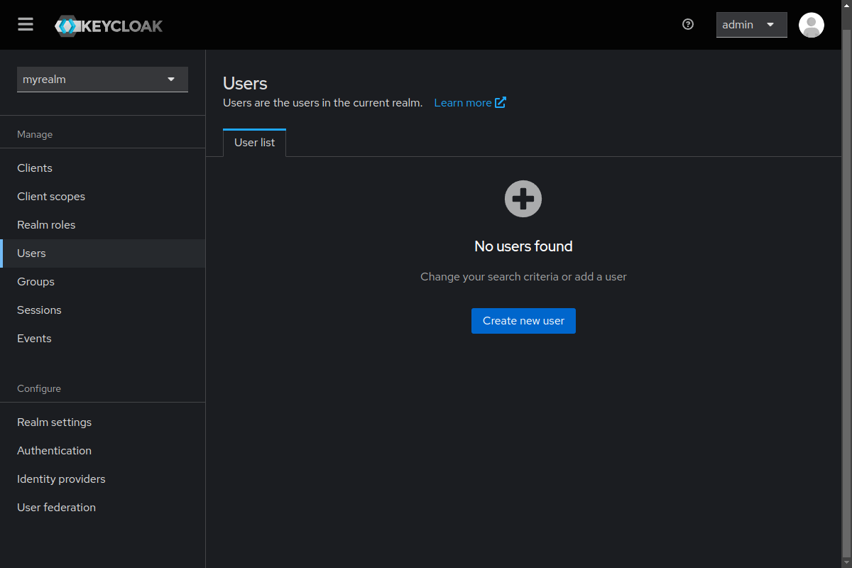 admin which we use to configure Keycloak in the next section.